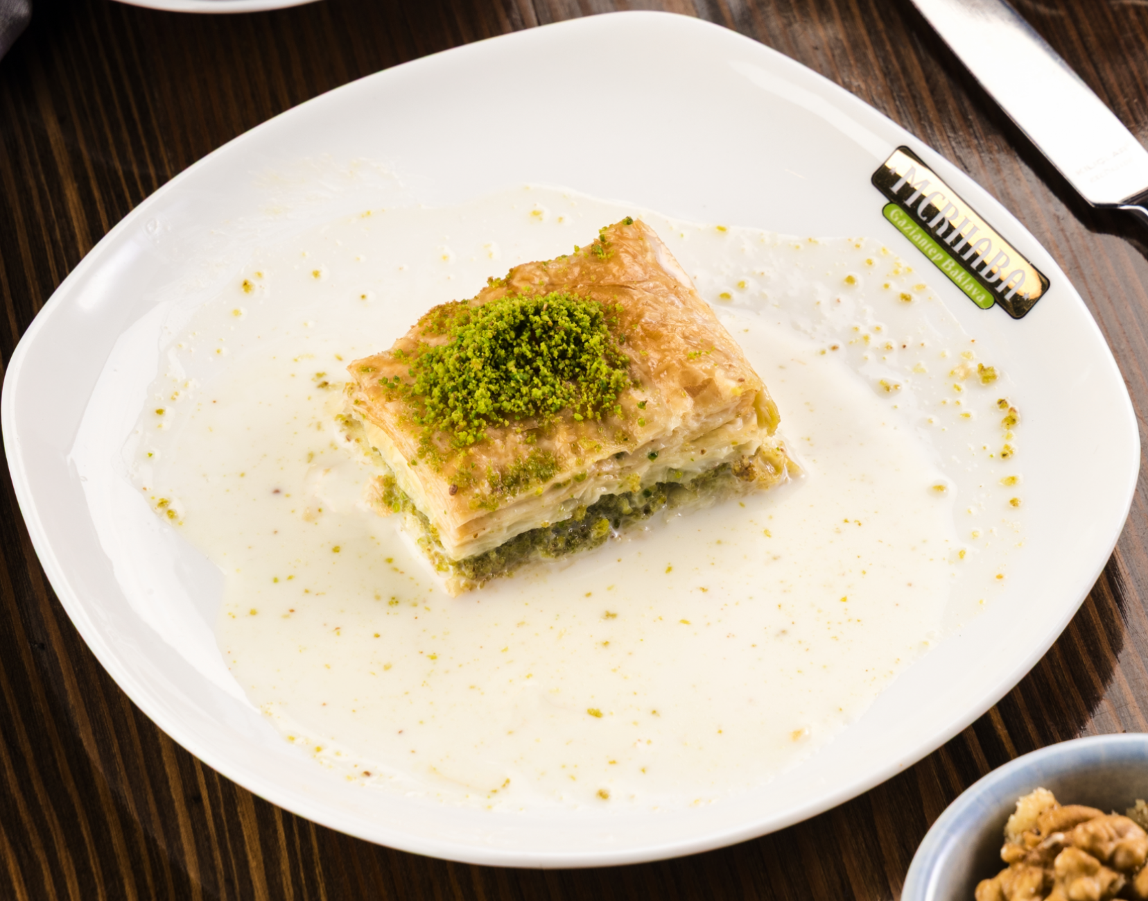 Klasik baklavanın modern yorumudur. Kat kat yufka ve bol fıstıkla yapılır, şerbeti sütle hazırlanır. Üzeri kakao ve rendelenmiş çikolata ile süslenir. Hafif ve serinletici bir lezzet sunar.